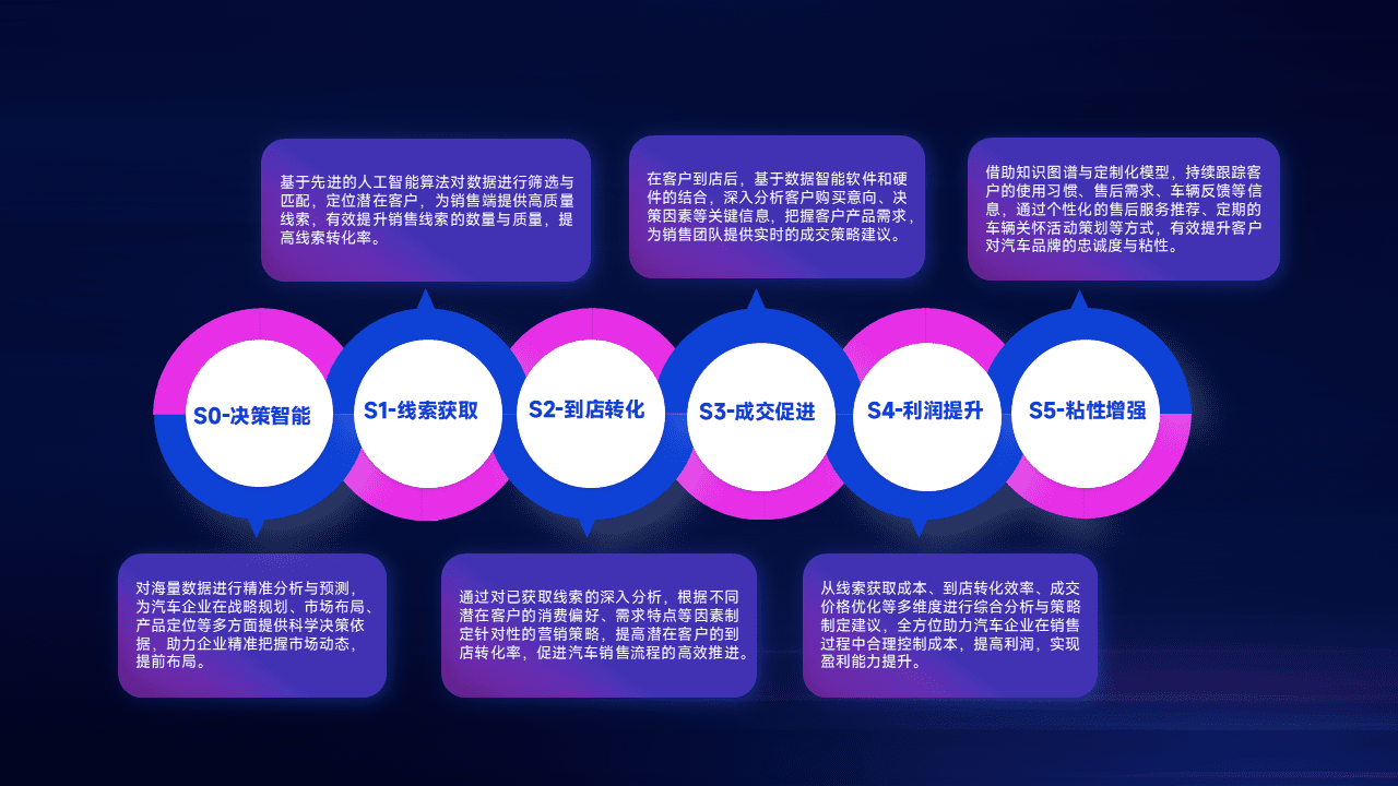 通过拓宽潜在客户来源、、、、优化线索分配并提高到店转化率,,以增强销售效率。。同时,,利用线索数据不断优化分析模型,,有效提升转化率,,,,扩大营销影响力。。